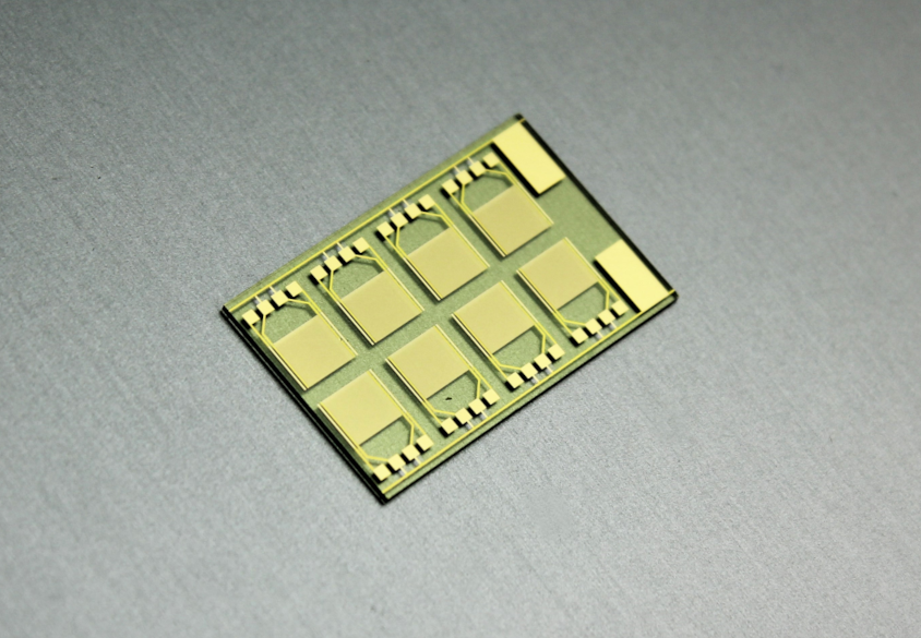 Manuel Bäuscher: At the beginning, we developed different sensor designs, which we produced on wafer level. That means we produced different electrode designs and different sensor area diameters. Then we had a look at which design had the greatest signal differences. In terms of size, however, it didn’t quite fit, and we wasted space. For mass production technology, it’s essential to save space. Furthermore, we tested deposition techniques with the new material reduced graphene oxide on these sensors. We did that for each sensor individually, one by one. Of course, this is not economical. With this new second-generation sensor, we committed ourselves to a layout, i.e. to only one electrode geometry on the sensor surface. That’s why we can now coat all eight grades at once. This saves time. We are now trying to scale the whole thing up, so that perhaps even the entire wafer, on which we have 400 sensors, can be coated at once.